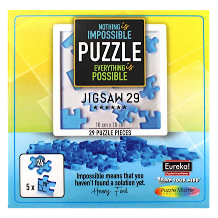 Découvrez l'extraordinaire puzzle Jigsaw 29 de Yuu Asaka, un ajout captivant à la collection de puzzles. Ce casse-tête unique se compose de 29 pièces, dont 5 pièces d'angle, remettant en question la conception conventionnelle du puzzle. Les puzzles innovants de style emballage d'Asaka ont révolutionné le monde des puzzles, et le Jigsaw 29 ne fait pas exception. Parfait pour les amateurs de puzzles, ce casse-tête très difficile nécessite que les 29 pièces s'insèrent dans le cadre de 10 cm x 10 cm sans aucun espace, et il n'y a qu'une seule solution. Ce puzzle magnifiquement conçu, produit par Hanayama, promet de vous offir une expérience de puzzle inoubliable.