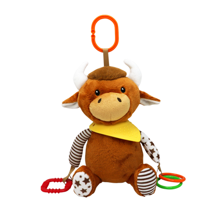 Adorable peluche Vache brune des Highlands incluant anneaux et anneaux de dentition,